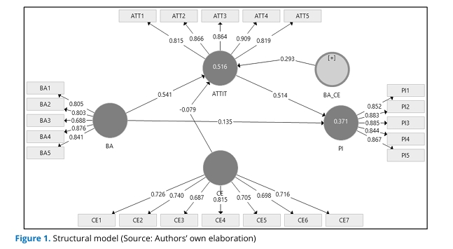 The study used a deductive approach with an online survey technique. Customers who bought FMCGs online through social media in the previous six to twelve months made up the study’s sample. The population frame comprised individuals from five main cities of Pakistan such as Islamabad, Lahore, Karachi, Peshawar, and Faisalabad. The sample size for the study is set to 208 based on the convenience sampling technique. Cross-sectional data has been gathered from the individuals via an adapted questionnaire having 22 close ended questions. 5 items of BA have been adapted from Sasmita and Suki (2015), 5 items of PI has been adapted from Duffett (2020), 5 items of attitude has been adapted from Huang et al. (2010), and 7 items of CE has been adapted from Hani et al. (2018), the relationship between all items and constructs are reflective in nature as all items capture the same domain of their focal construct (Hadi, 2022). Instrumentations are available in Appendix A. Data has been analyzed via PLS-SEM, SmartPLS 4.0. Demographic analysis shows a majority of the respondents are females with an age bracket of 21 to 30 years. The income level of the majority of respondent’s lies between 30,000 to 59,000 Rs. and all respondents are buying FMCGs online for the last six months to one year of the period which was a prerequisite to being a sample of this study.