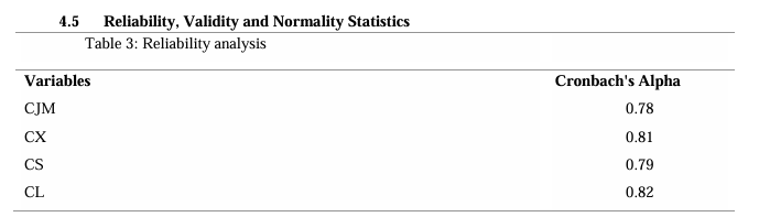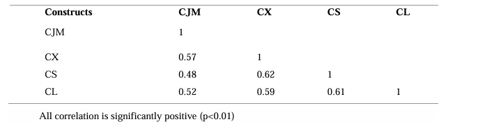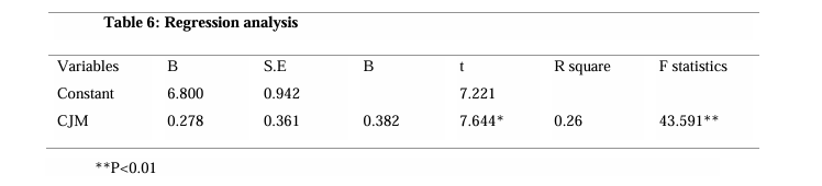 To test the hypotheses a regression analysis is conducted. Table 6 shows the significant direct effect of CJM on CL.