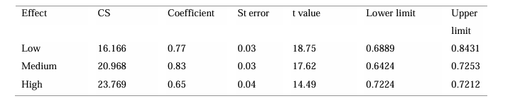 To test Hayes & Preacher (2014) (Model 1)’s moderation study of CS between CE and BL via Process Macro, a route analysis was performed. First, the significance of the moderation effect is determined; if it is significant, then moderation exists and is meaningful, as evidenced by the values of the lower and upper limit confidence intervals. When zero does not fall between the two extremes, moderation is significant. The fact that the lower limit is 0.23 and the higher limit is 0.014 indicates that zero does not lie between the two values, indicating that moderation exists. Table 8 demonstrates the low, medium, and high effect of SI in the relationship between ATML and BITML to determine which condition has a significant effect.